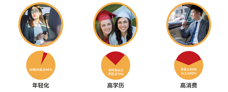 網(wǎng)約車(chē)的受眾人群呈現(xiàn)年輕化/高收入/高學(xué)歷的特點(diǎn),與70%以上廣告主的目標(biāo)客戶(hù)群體高度吻合,屬于金字塔尖的消費(fèi)人群。
